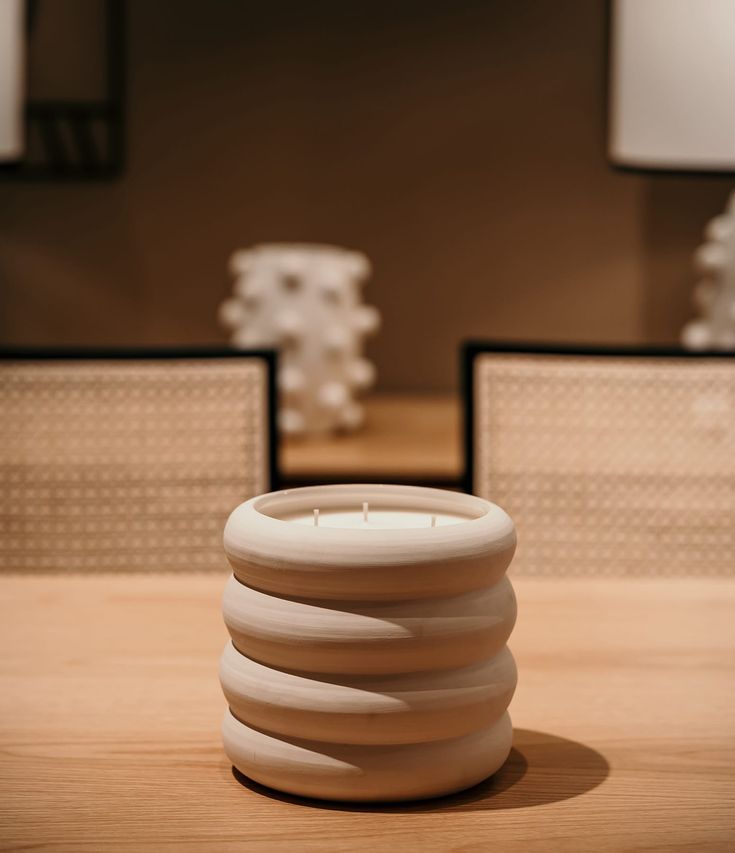 Des bougies artisanales, des plateaux en Jesmonite et des tableaux texturés, façonnés à la main avec soin.